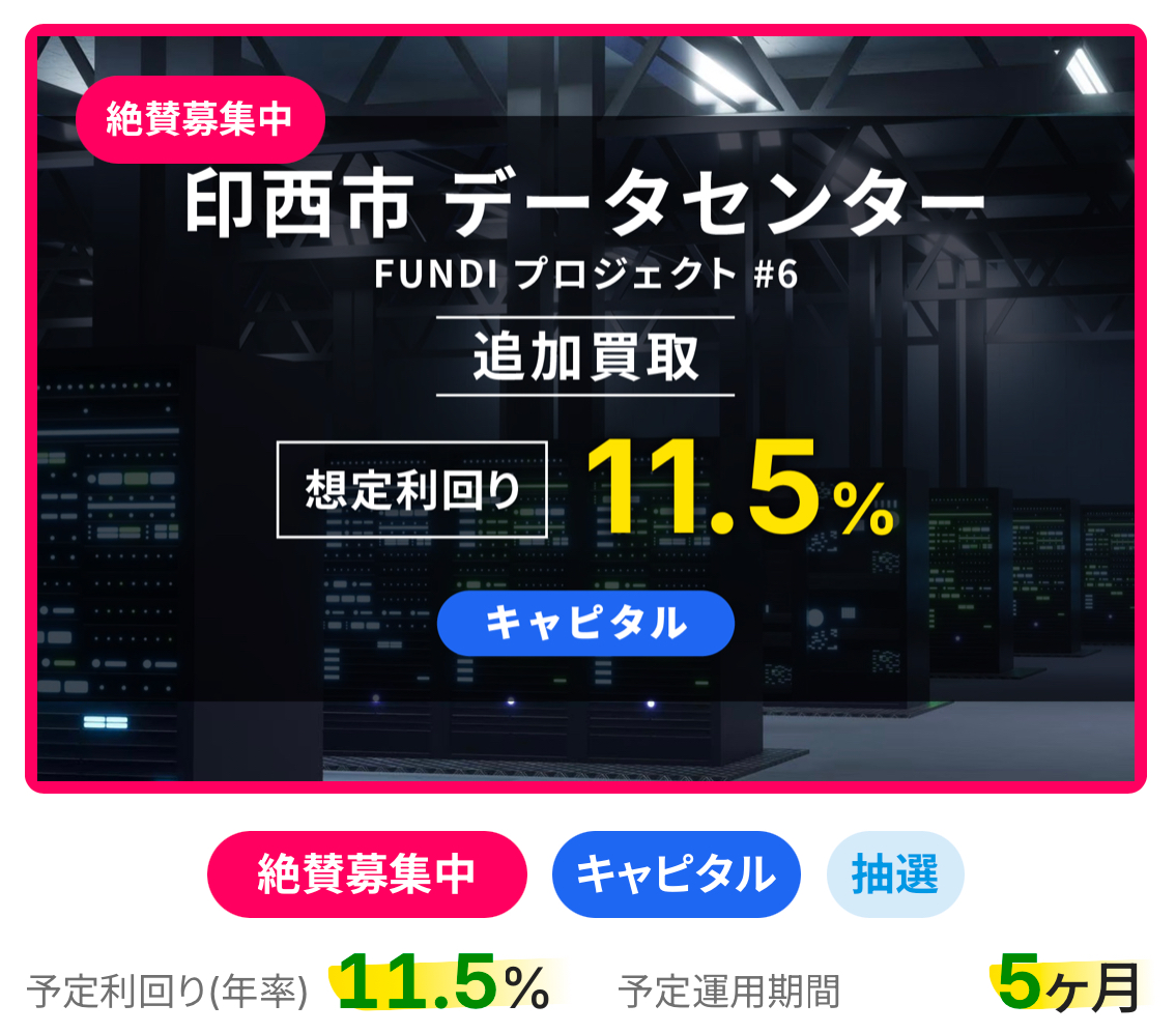 FUNDIはそんな今後需要が増えていくデータセンター中心の不動産クラファン。他の不動産クラファンにはない強みを持ってるよ。