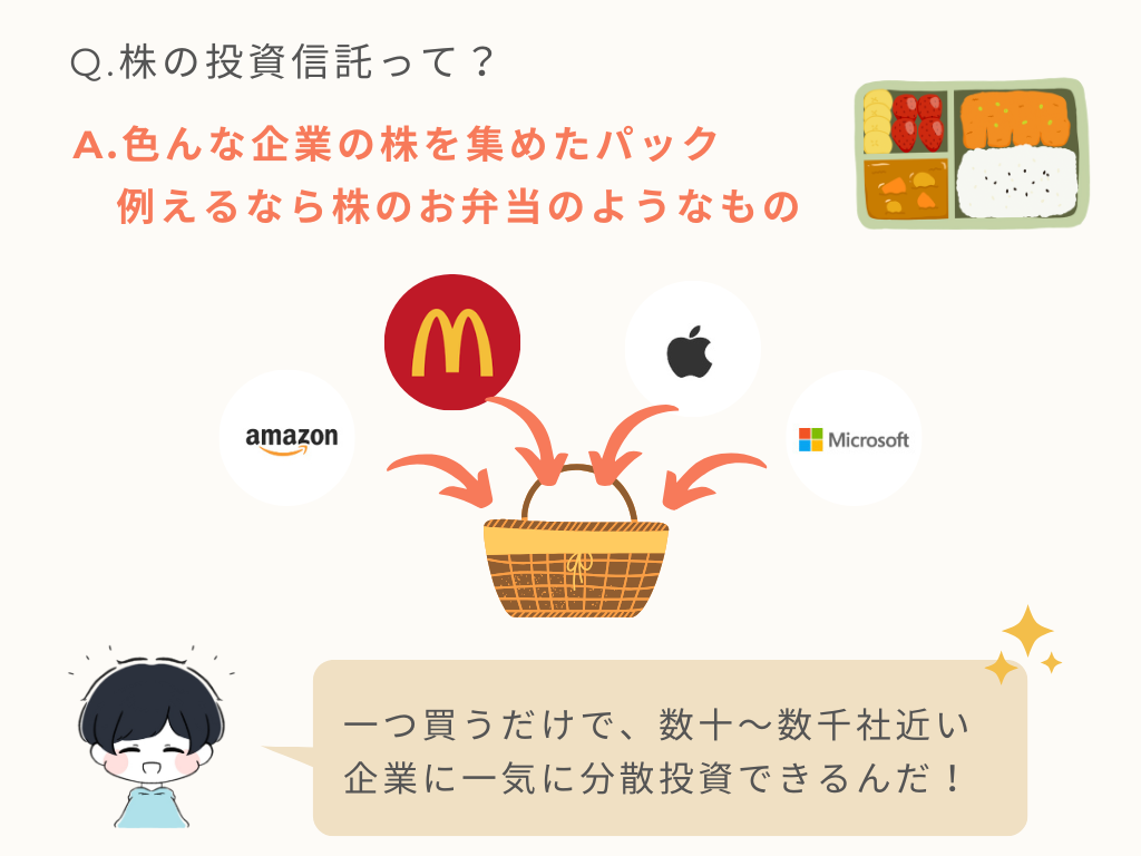 投資信託っていうのは、株の詰め合わせパックのこと。