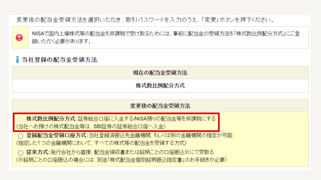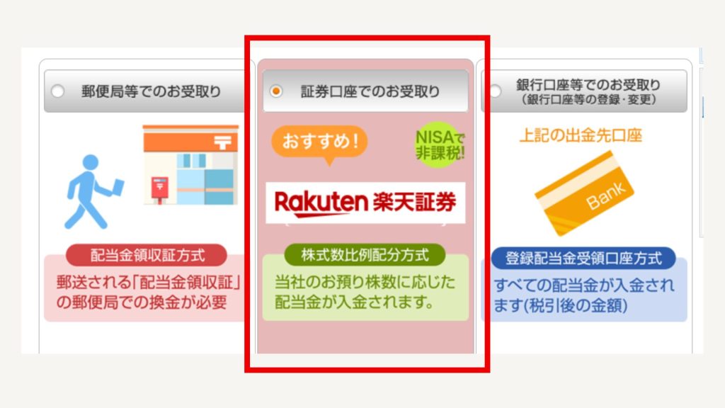 登録した銀行口座に、すべての配当金が振り込まれる方法 - 個別銘柄指定方式
