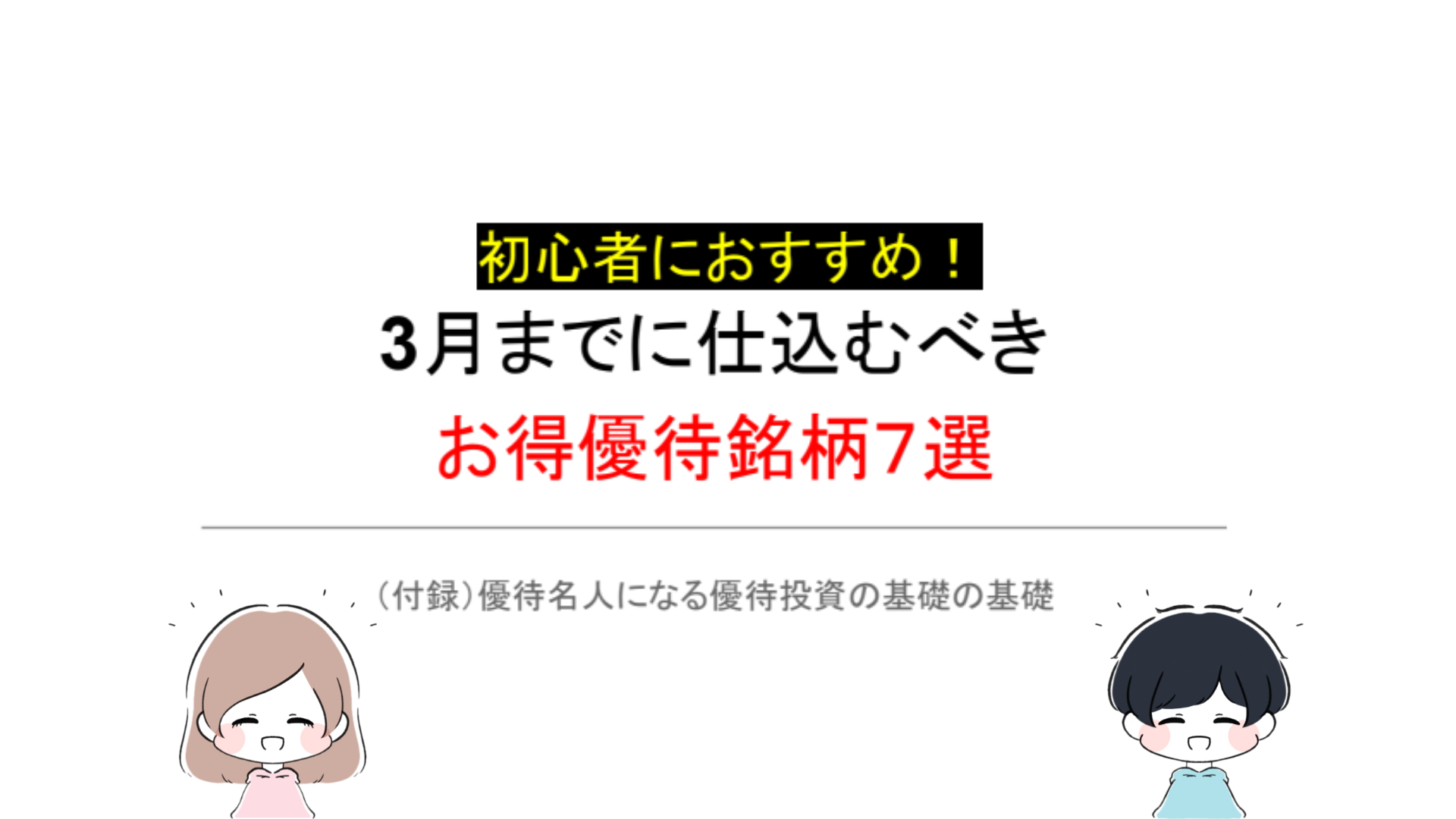 3月までに買うと優待がもらえる、お得な優待株を7つ教えてくれるよ!